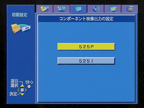 | ●システム設定 ※ここでは、E20とは違っている箇所を説明する。出てこない設定は、E20と同じであるので、 E20のページを参照して下さい。 1.トップウインドウ ・・・HDD選択時、「ダビング」「DV入力自動録画」という項目が追加。 ![]() 1−1.「ディスク管理」 ・・・ HDDディスクのフォーマットを行う。 ![]() ・フォーマットの確認 ![]() 1−1−1.ディスクタイトルの入力画面 ・・・ 漢字の入力が出来るようになった。 リモコンのみで操作のため、非常に使い勝手が悪い。 ![]() ・漢字選択ウィンドウ ![]() 1−2.「タイマー予約」 ・・・ タイマー予約の設定・消去を行う。 ・HDDと、ディスクの残量が時間で出るようになっている。 ・右端のアイコンで、録画先がHDDか、ディスクか解るようになっている。 ![]() 1−2−1.タイマー設定画面 ・録画先としてHDDかディスクかが選択できる。 ・毎週何曜日を選ぶと、「更新」という項目が出るようになる。 入・・・毎週同じエリアを上書き録画 切・・・毎週を別番組として録画 ・予約時にあらかじめタイトル入力が出来るようになっている。 ![]() 1−3.「初期設定」 ・・・ レコーダー全体の設定を管理する。 ・映像設定のタブに、コンポーネント映像出力、プログレッシブ[4:3出力] が増えている。 ![]() ・コンポーネント映像出力の設定 ・525P ・・・ プログレッシブ出力 ・525I ・・・ インターレース出力 ![]() ・プログレッシブ[4:3出力] プログレッシブ出力時の4:3映像の出力形態 ・フル ・・・ ワイド画面として出力される ・ノーマル ・・・ 4:3画面として出力される ![]() 1−4.「ダビング」 ・・・ HDD<−>ディスク間のダビングを行う。 ![]() ・ダビング方向の設定 ・HDD−>ディスク ・ディスク−>HDD ![]() ・プログラム選択 ダビングする録画を選択する ・・・ そのまま、丸ごとコピー ![]() ・プレイリスト選択 ダビングするプレイリストを選択する ・・・ 編集したプレイリストをコピー ![]() ・ダビングリスト ダビングする番組一覧 ![]() ・ダビング録画モード設定 ダビングする録画モードを選択する。 ・高速を選択すると、丸ごとファイルコピーとなり、高速でコピーされる。 ・他のモードの場合、基本的に元の番組のモードと同じモードならば 単なる再生コピーとなる。モードが違う場合、再エンコードされるため、画質が 悪化する可能性がある。 ![]() ・ダビング選択後の画面 録画モードで高速以外の場合、自動CM早送り設定が選択できるようになる。 ・入 ・・・ CMカットを行う ・切 ・・・ CMカットしない ただし、単に本編が2重音声で、CMがステレオになった場合などに機能する ので、機能しない場合もある。 ![]() ・ダビング開始確認 ![]() 1−5.「DV入力自動録画」 ・・・ DVカメラから連動し、自動的に録画を行う。 ![]() 1−5.再生時のリモコンの表示切り替えボタンで表示される内容 ・ここで、入力したタイトルを表示すべきだと思うのだが・・・。 ![]() |